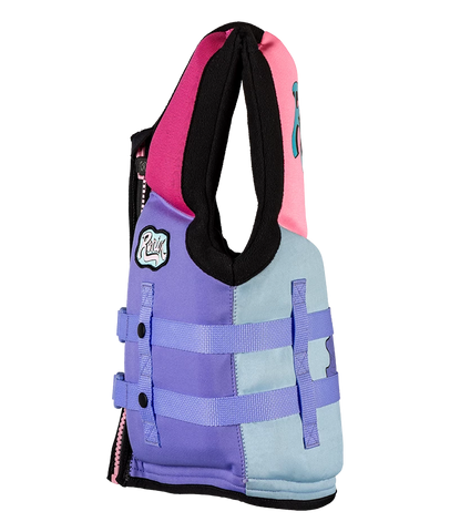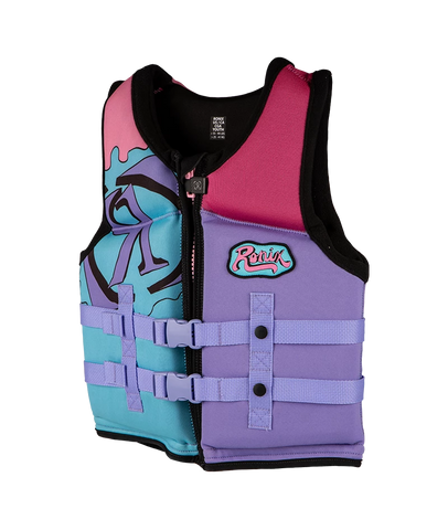 A lightweight water resistant girl's vest approved by the Coast Guard in the United States and Canada.