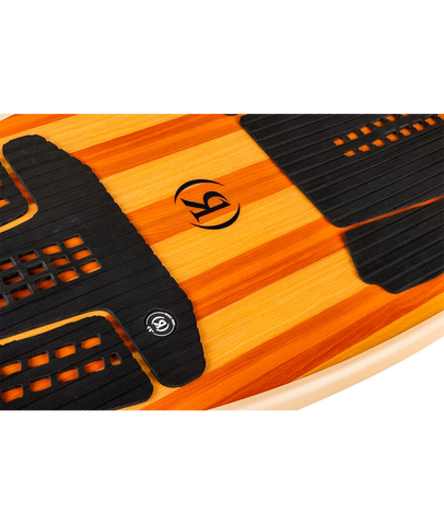 A skimmer with extra speed, stability, grip, and dampening. This wide, speedy, and stable-riding skim board has the feel of a thin profile, sharp rail, pintail traditional skimmer, but has the nose of a wide longboard so you can jump on the throttle quicker, easier, and with more stability. This design opens an entire spectrum of tricks only possible on a skimmer – but with the stability and controlled speed of a traditional surfer. Now you can ride a skimmer on even smaller size wakes and feel more confident with your tricks due to the blunt nose shape.