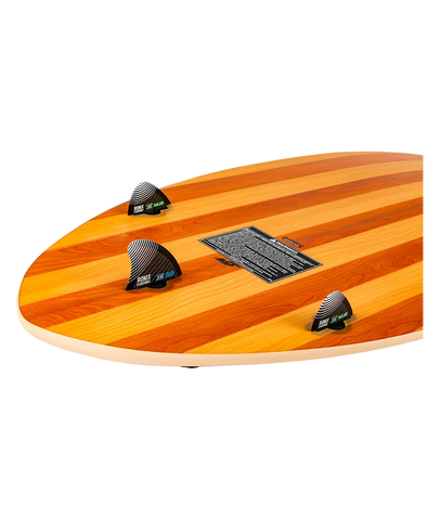 A new breed of skimmer for riders who want the agility of a thin, pintail skim board — but with the added stability of a wider longboard nose. The result? Faster starts, more confident tricks, and a whole new level of versatility on smaller wakes. Built with a lightweight surf core wrapped in a Paulownia wood laminate exterior, this board delivers a smooth, dampened ride that absorbs energy instead of amplifying it. The Blunt Nose Skimmer also features two additional outside nub fins for extra grip and control. Deep water starts, spins, airs — all require less effort (and are a lot more fun).