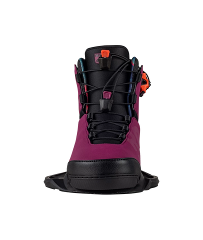 The Rise Boot is designed specifically for lady shredders. It features our proprietary Intuition+ heat moldable liner for the best fit and performance in women’s wake. We recognize that a woman’s foot has different proportions; to create the perfect fit, we use softer foam and offer a lower cut better suited for their needs. With the all-new Mainframe 2.0 High Cut skeleton, and the FlexForm 3D heel panel, every subtle movement can be efficiently transferred from your feet to the board. Take a ride on the Rise, you’ll thank us later.