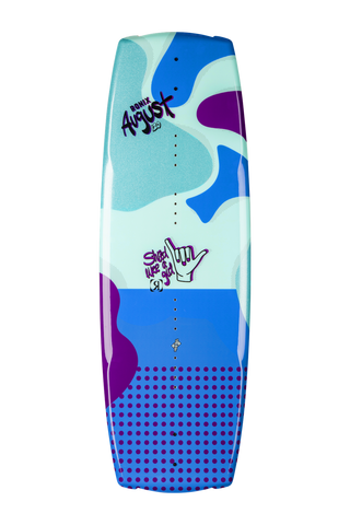 Every aspect of this kid’s shape/construction was designed for stability and progression. Designed and created by grom's recognizing that wakeboarding is the only board sport where your hips and shoulders aren’t parallel. A symmetrical shape with asymmetric features designed solely for the needs of the next generation of rippers. Your body is in an unbalanced position edging into the wake toeside, so we created a thinner, sharper rail to help set an easier, more confident edge. Then on your heelside your body is more comfortable in an aligned position, so we added a fuller vertical rail to generate more top water speed over the water. Come into the wake flat without much edge hold? No worries, we have more volume in the ends to help generate natural lift off the wake. Our Grom Glass offers a lighter layup for more feel with the water, and less swing weight in the air. A rockerline designed to assist a rider in a relaxed, neutrally balanced position. Besure and check out the scratch and sniff scent hidden on the top of the board.